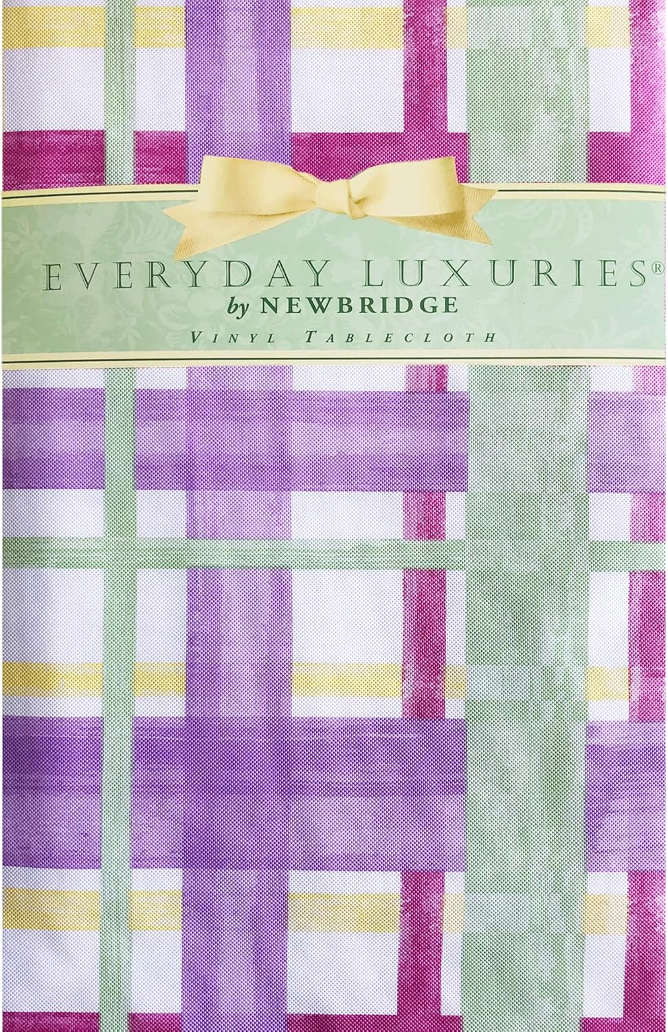 Newbridge designed this contemporary plaid print vinyl tablecloth favorite for your next barbeque, picnic or busy home or restaurant. The Watercolor Plaid print tablecloth features a sweet lavender, green and yellow, plaid colored background with a subtle visual texture. The Watercolor Plaid Vinyl Flannel Backed is designed to be a favorite for your busy home or restaurant designed on premium gauge vinyl with a polyester flannel backing. Great vinyl flannel backed tablecloth for use with adults and children for at home or in commercial setting that are either indoor or outdoor. Great for spring and summer entertaining for Memorial day, Mothers Day, Fathers day, Graduations, 4th of July, Labor day, Bridal & Baby Showers and beach and summer themed dinner parties. Perfect for decorating and keeping your table protected from everyday accidents. Like plastic, the easy-care vinyl surface can be wiped clean with a damp cloth or sponge. Vinyl top layer adds a protective waterproof layer. Flannel backed to reduce skidding and slipping on most surfaces. Finished with sewn edges. Easy to fold and store when not in use. Great for indoor and outdoor, home, and commercial use alike. Great for Indoor and Outdoor Entertaining, Barbeques, Dining, Parties, Picnics, Restaurants and Cafeterias - Easy Care - Wipe Clean - No Laundering. Watercolor Plaid Flannel Backed Vinyl Tablecloths are available in a large selection of sizes and shapes for all of your indoor or outdoor entertaining needs. Sizes available are: 52 x 52 Square, 52 x 70 Oblong, 60 x 84 Oblong, 60 x 84 Oval, 60 x 102 Oblong, 60 x 120 Oblong, 70 Round and 70 Inch Zippered Umbrella Round